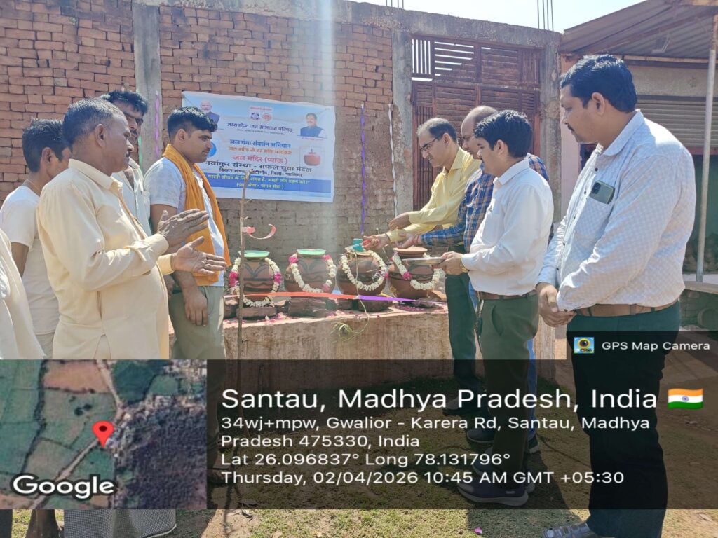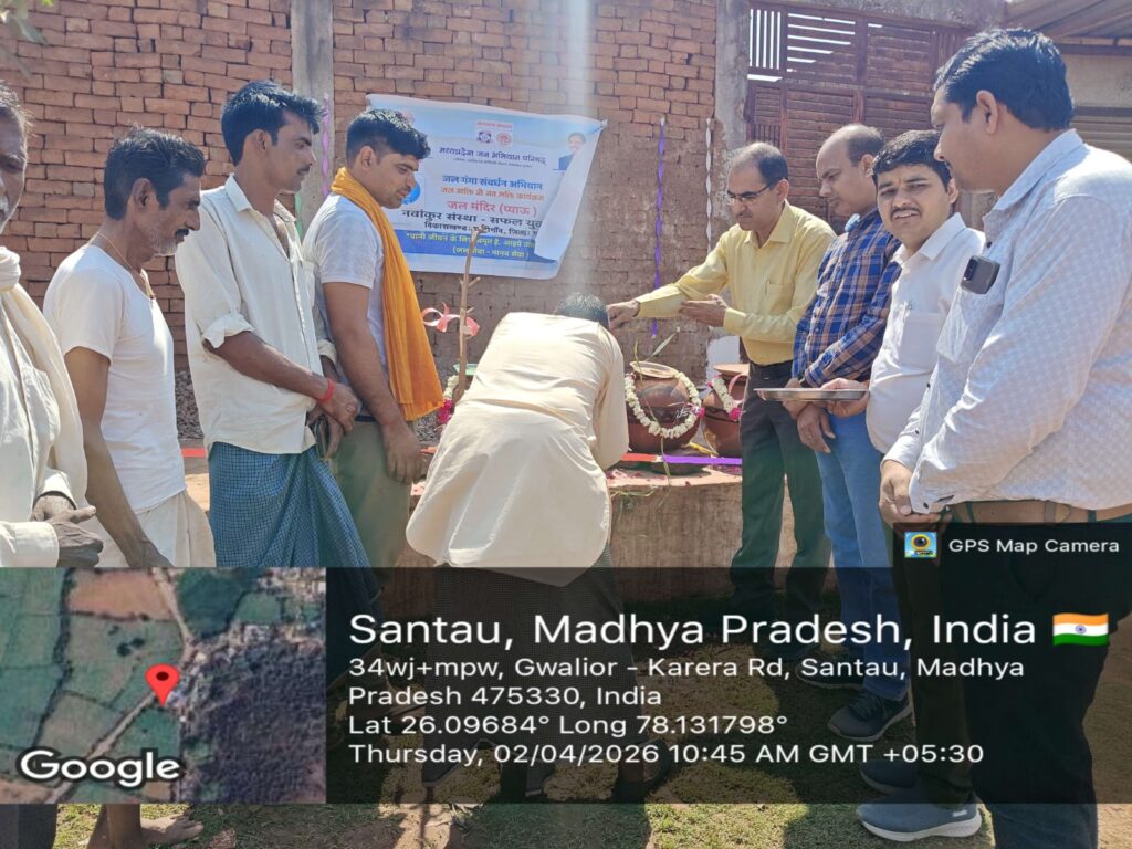 ग्वालियर 2 अप्रैल 2026 । योजना आर्थिक एवं सांख्यिकी विभाग के अंतर्गत मध्य प्रदेश जन अभियान परिषद से संबद्ध नवांकुर संस्था सफल युवा मंडल द्वारा ग्राम सातऊ में जल मंदिर (प्याऊ) का विधिवत उद्घाटन किया गया। इस अवसर पर एक संगोष्ठी कार्यक्रम का भी आयोजन किया गया । मुख्य अतिथि के रूप में संभाग समन्वयक श्री सुशील बरुआ ने अपने संबोधन में जल संरक्षण के महत्व पर प्रकाश डालते हुए ग्रामीणों को जल के सदुपयोग एवं संरक्षण के प्रति जागरूक रहने का संदेश दिया।अध्यक्षता जिला समन्वयक श्री धर्मेंद्र दीक्षित ने की और कहा जल गंगा संवर्धन अभियान के विभिन्न पहलुओं को विस्तारपूर्वक समझाते हुए ग्रामीणों को जल बचाने और वर्षा जल संचयन के उपाय अपनाने के लिए प्रेरित किया। कार्यक्रम संचालक एवं नवांकुर संस्था सफल युवा मंडल के अध्यक्ष श्री अरविंद कुशवाह ने कार्यक्रम का सफल संचालन करते हुए सभी अतिथियों एवं ग्रामीणों का स्वागत किया तथा जल संरक्षण के प्रति जनभागीदारी बढ़ाने पर जोर दिया। कार्यक्रम में उपस्थित ब्लॉक समन्वयक श्री विनोद शर्मा ने अंत में सभी का आभार व्यक्त किया। कार्यक्रम को सफल बनाने में रणवीर सिंह गुर्जर, जंडेल सिंह गुर्जर एवं समस्त ग्रामवासियों का महत्वपूर्ण योगदान रहा।