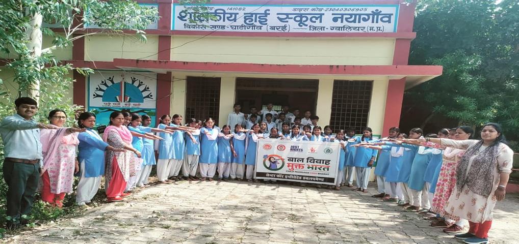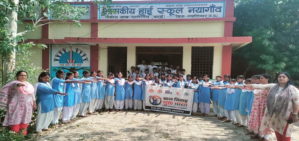 शासकीय हाई स्कूल नयागांव में महिला बाल विकास ग्वालियर एवं सेंटर फॉर इंटीग्रेटेड डेवलपमेंट के संयुक्त तत्वावधान में बाल विवाह मुक्त भारत अभियान पर संगोष्ठी आयोजित की गई और उपस्थित सभी को बाल विवाह मुक्त भारत की शपथ दिलाई गई।