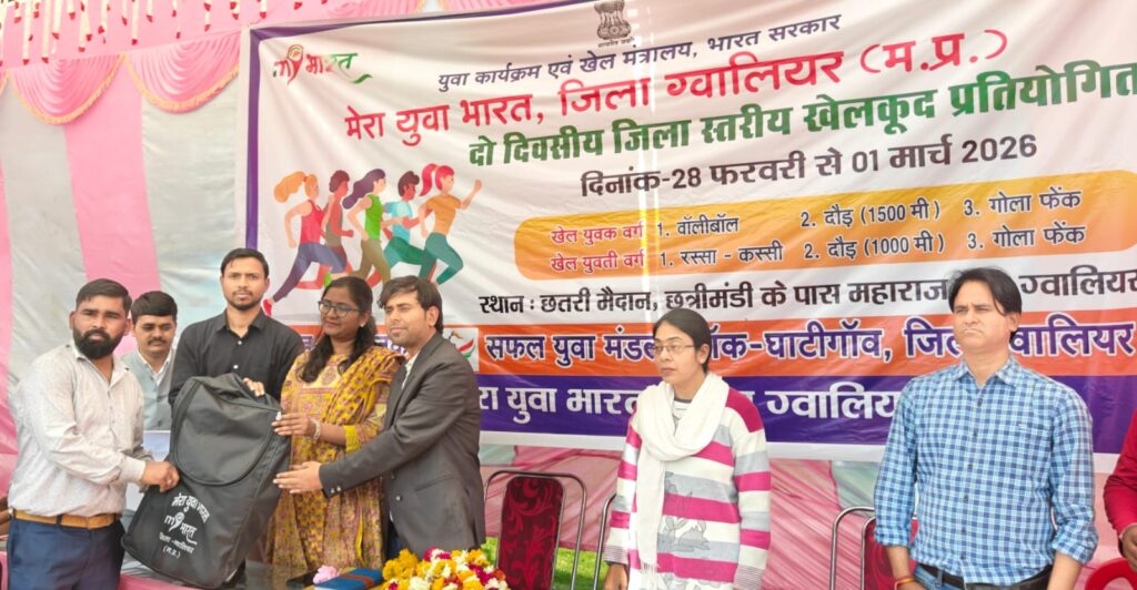 ग्वालियर 1 मार्च । युवा कार्यक्रम एवं खेल मंत्रालय भारत सरकार के अंतर्गत मेरा युवा भारत, जिला ग्वालियर से संबंध सफल युवा मंडल द्वारा आयोजित दो दिवसीय जिला स्तरीय खेलकूद प्रतियोगिता का समापन उत्साहपूर्ण वातावरण में सम्पन्न हुआ।
