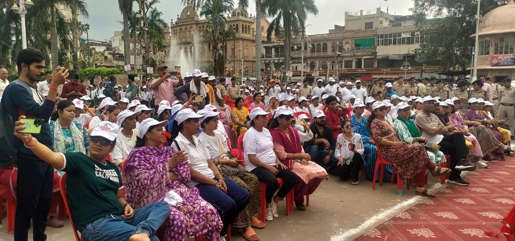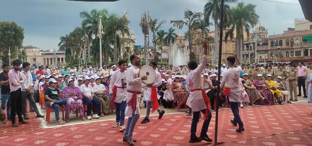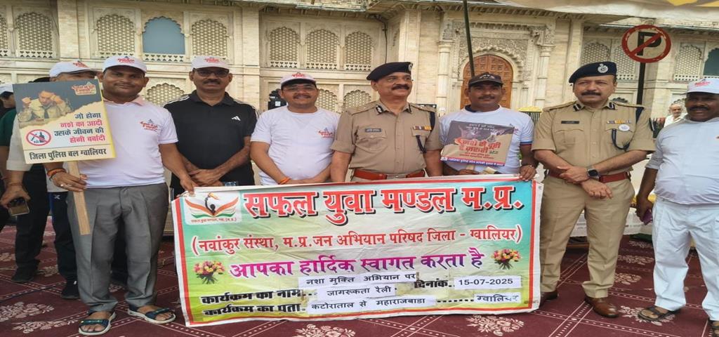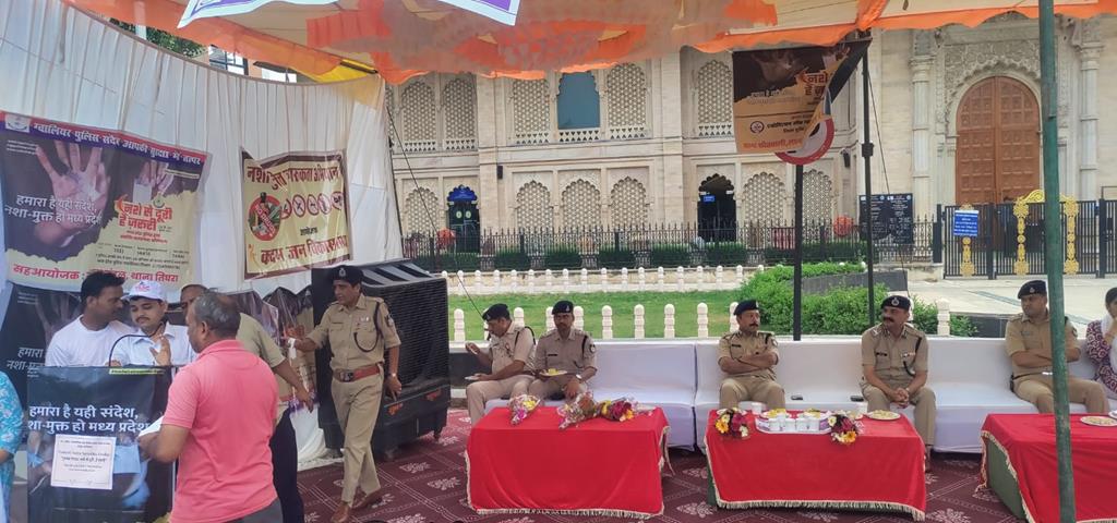 नाव से दूरी जरूरी जन-जागरूकता अभियान चलाया जा रहा है। उक्त अभियान के तहत आज दिनांक 24.07.2025 को वरिष्ठ पुलिस महानिदेशक प्रतिपक्ष श्री धर्मवीर सिंह (भापुसे) के निर्देश तथा अभियान के कैडेट अधिकारी अति. पुलिस अधीक्षक श्रीमती सुमन गुर्जर के मार्गदर्शन में आज दिनांक 24 जुलाई 2025 को ‘नशा मुक्ति जन जागरूकता अभियान’ के तहत शहर के महाराज पर एक विशाल मानव श्रृंखला का आयोजन किया गया। इस कार्यक्रम का उद्देश्य नशे के आदी नागरिकों को नशामुक्ति के लिए प्रेरित करना और उन्हें नशामुक्ति के लिए प्रेरित करना था। साथ ही जिलों के स्कूल, विभिन्न स्कूल और कोचिंग सेंटर और सार्वजनिक स्थानों पर नशा मुक्ति जागरूकता और हस्ताक्षर अभियान चलाया गया।
