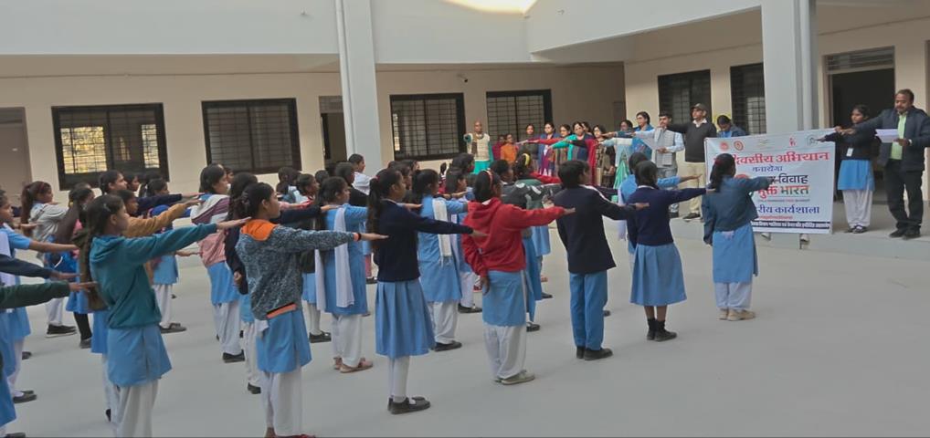 कार्यक्रम में छात्राओं एवं स्टाफ को बाल विवाह के दुष्परिणाम, संबंधित कानूनी प्रावधानों एवं समाज पर इसके दूरगामी प्रभावों के बारे में विस्तारपूर्वक जानकारी प्रदान की गई। इसके पश्चात सभी उपस्थितों को बाल विवाह मुक्त भारत बनाने की शपथ दिलाई गई।