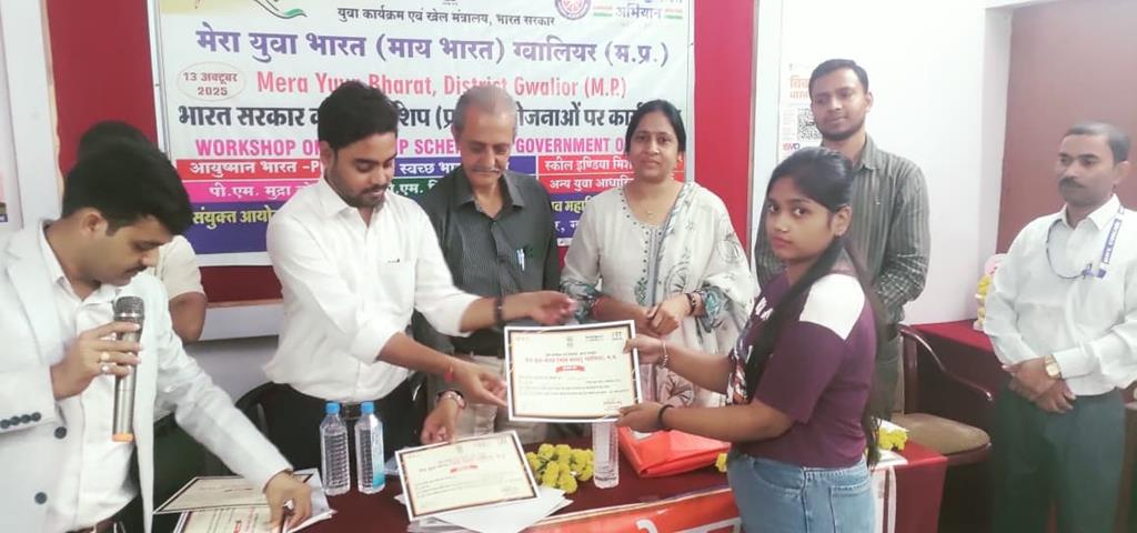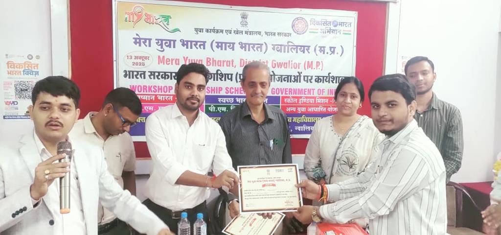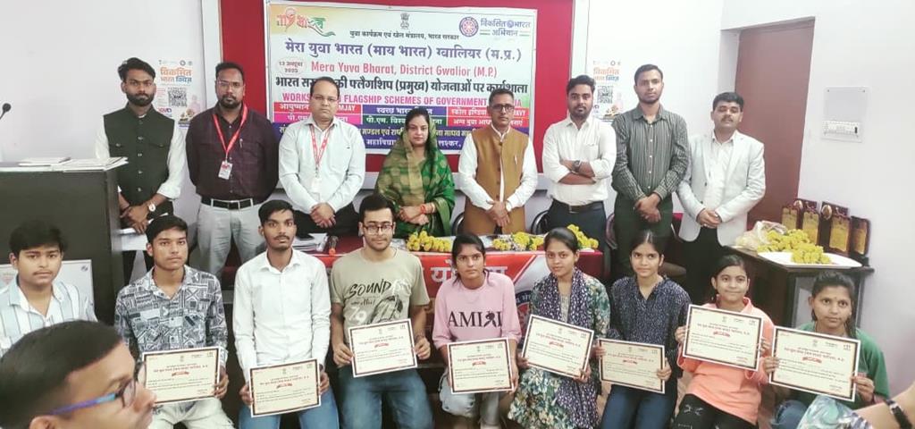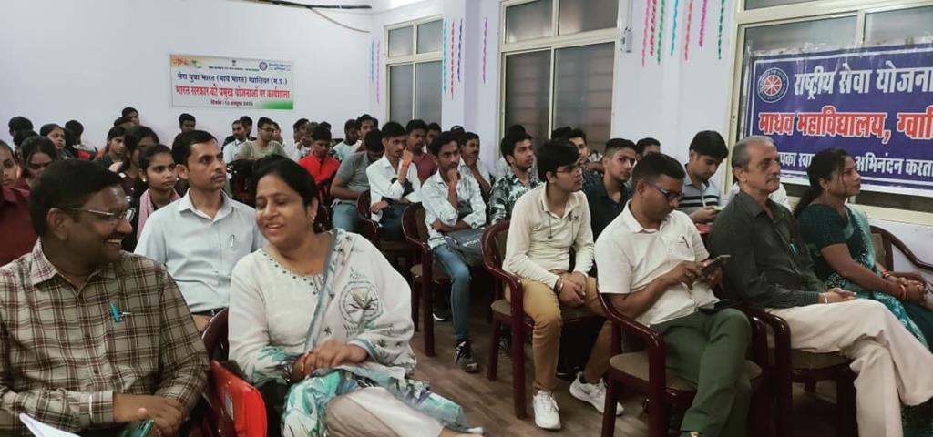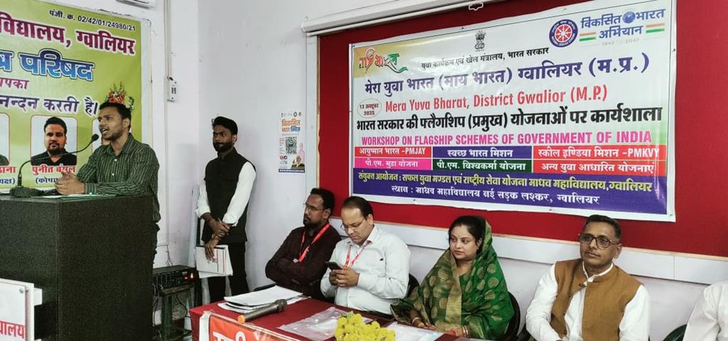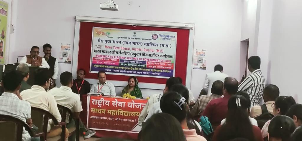 युवा कार्यक्रम एवं खेल मंत्रालय, भारत सरकार के अंतर्गत मेरा युवा भारत (माय भारत) ग्वालियर से सम्बद्ध सफल युवा मंडल एवं एन.एस.एस. इकाई, माधव महाविद्यालय ग्वालियर के संयुक्त तत्वावधान में माधव महाविद्यालय नई सड़क ग्वालियर में भारत सरकार की फ्लैगशिप योजनाओं पर कार्यशाला का आयोजन किया गया।