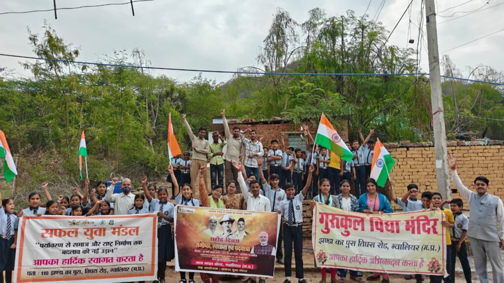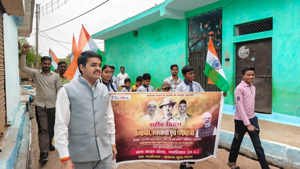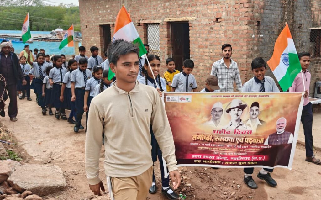 ग्वालियर, 23 मार्च 2026। युवा कार्यक्रम एवं खेल मंत्रालय, भारत सरकार के अंतर्गत मेरा युवा भारत ग्वालियर से संबद्ध सफल युवा मंडल द्वारा शहीद दिवस के अवसर पर गुरुकुल विद्या मंदिर स्कूल, झंडा का पुरा तिघरा रोड, ग्वालियर में संगोष्ठी, पदयात्रा एवं स्वच्छता अभियान का आयोजन किया गया।